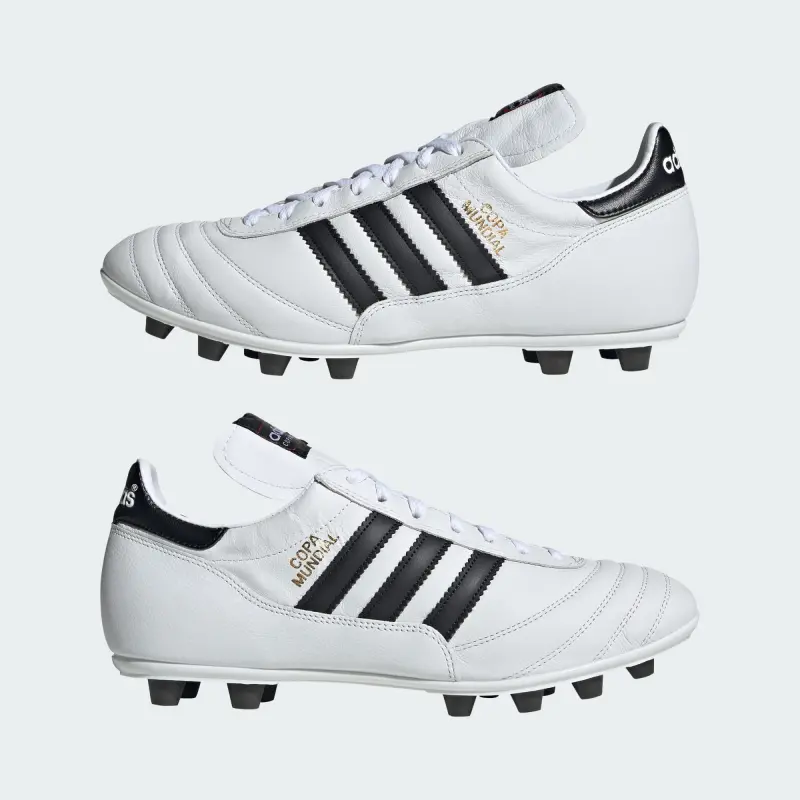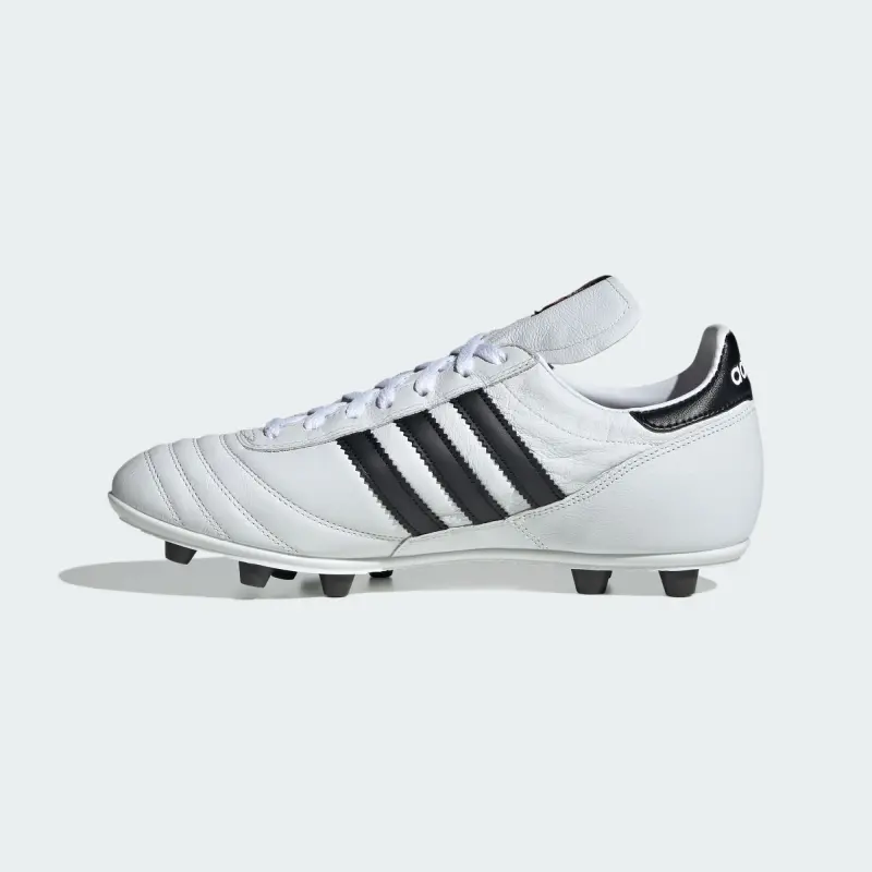 First released in 1979, the adidas Copa Mundial has a long and storied history as one of the most iconic cleats in world soccer. Made in Germany, these ones feature a soft leather upper for a comfortable fit and a soft touch. Their firm ground outsole provides solid traction on dry natural grass.