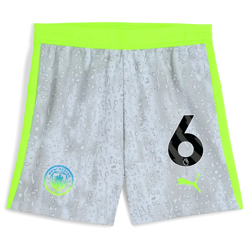 The Kids’ Manchester City Football Shorts 2025/26 blend style and performance. Featuring dryCELL sweat-wicking technology to keep young fans dry and cool during training. The regular fit and elasticated waistband with integrated drawcord ensure a secure, adjustable feel. Curved side seams enhance movement and flexibility on or off the pitch. Finished with the Manchester City crest on the right leg and PUMA Cat logo on the left, these shorts carry the team spirit. Made to stand out with an unique rain-inspired print. Man City are a symbol of the people, the culture, and the humour of Manchester. That’s why the 25/26 Third Kit is a tribute to Mancunian weather, designed for those who carry City in their hearts, rain or shine (Though, let’s be honest, mostly rain).